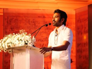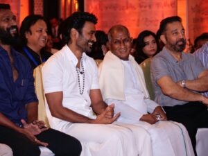 இவ்விழாவினில் நடிகர் தனுஷ் கூறுகையில்.., “இது எனக்கு உண்மையிலேயே நிறைவான தருணம். எனது சிறுவயதிலிருந்தே, மேஸ்ட்ரோ இளையராஜா சாரின் மயக்கும் மெல்லிசைக்கு நான் ரசிகன். நம் எண்ணங்களே நம்மை வடிவமைக்கப்படுகின்றன என்று கூறுவார்கள். அது தான் உண்மை, நாம் முழு மனதுடன் நம் கனவை நோக்கி நம்மை அர்ப்பணிக்கும் போது, அவை நிறைவேறும். பலர் தங்கள் மன அமைதிக்கு இளையராஜாவின் பாடல்களை நாடுகிறார்கள். பலர் உறக்கத்திற்காக அவரது பாடல்களில் மூழ்குவார்கள், நான் என் பல இரவுகளை அவரது இசையுடன் கழித்துள்ளேன். வெள்ளித்திரையில் அவரது பாத்திரத்தை ஏற்று நடிக்க வேண்டும் என்பது எனது கனவாக இருந்தது. இப்போது அது நடப்பது மிகுந்த மகிழ்ச்சி. எனது திரை வாழ்க்கையில் ஆரம்பம் முதல் இப்போது வரை, ஒரு நடிகனாக உண்மையிலேயே சிறப்பான நடிப்பை வழங்க வேண்டிய தருணத்தில் எல்லாம், எனது இயர்போன்கள் மூலம் அவரது இசையமைப்பில் மூழ்கி, அதன் மூலமே என் நடிப்பை வெளிப்படுத்துவேன். இன்று வரை எனக்கு நடிப்பு சொல்லித்தருவது அவரது இசை தான். இப்படத்தில் அவரது கதாபாத்திரத்தில் நடிக்க வாய்ப்பு கிடைத்ததில் நான் மிகவும் பெருமையாக உணர்கிறேன். இளையராஜா சாரின் உண்மையான அபிமானியான மாண்புமிகு கமல்ஹாசன் சாரின் வருகைக்கு என் மனமார்ந்த நன்றியைத் தெரிவித்துக் கொள்கிறேன். அருண் மாதேஸ்வரன் ஒரு மகத்தான பொறுப்பின் கனத்தை உணர்கிறார் என்பது புரிகிறது. ஆனால் இந்த திரைப்படத்தை மிக மகிழ்ச்சியோடும் உற்சாகத்தோடும் உருவாக்கலாம் என அவரை ஊக்குவிக்கிறேன். ஏனெனில் இது கலையின் மீதான காதல் இளையராஜாவின் மீதான காதல். அனைவருக்கும் என் நன்றிகள்.