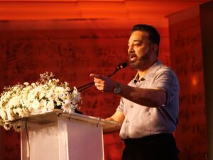 மேஸ்ட்ரோ இளையராஜாவுடன் பல தசாப்தங்களாக தனது  நட்பை தொடர்ந்து வரும் உலகநாயகன் கமல்ஹாசன், ஒட்டுமொத்த குழுவிற்கும் தனது மனமார்ந்த வாழ்த்துக்களைத் தெரிவித்தார். மேலும்  அவர் கூறுகையில்.., “இந்த திரைப்படத்தை உயிர்ப்பிப்பதில் மகத்தான பொறுப்பு மற்றும் அழுத்தத்தை இயக்குநர் அருண் மாதேஸ்வரன் உணரக்கூடும் என்பது தெளிவாகத் தெரிகிறது. பாரத ரத்னா விருது பெற்ற “மேஸ்ட்ரோ இளையராஜா” பற்றிய அவரது தனித்துவமான கண்ணோட்டத்தை அவர் ரசித்து முன்வைக்கலாம் என்று நான் பரிந்துரைக்கிறேன்.  இந்த ஒரு ஐகானின் வாழ்க்கையைச் சித்தரிக்கும் ஒரு திரைப்படம். பல பாகங்களைக் கொண்டிருக்கலாம். மக்களின் வாழ்வோடு இணைந்திட்ட அவரது இசை தரும் தாக்கம் தனித்துவமானது. எனவே, இசைத்துறைக்கு பெருமை சேர்க்கும் இந்த இசைப் பேரறிஞரைப் பற்றிய தனது தனிப்பட்ட பார்வையை அருண் முன்வைக்குமாறு கேட்டுக்கொள்கிறேன். குணா திரைப்படத்தின் “கண்மணி அன்போடு காதலன்” என்ற பாடலில் இசைஞானி இளையராஜாவுடன் இணைந்து பணியாற்றியதை  நினைவு கூர்ந்த கமலஹாசன் அவர்கள்.., அந்தப் பாடல் எங்கள் இருவருக்கும் இடையிலான காதல் மற்றும் உணர்ச்சிகளின் அழகான பரிமாற்றம் என்றார். இளையராஜாவின் வாழ்க்கை வரலாற்றை அழகாகவும் நேர்த்தியாகவும் சித்தரிக்க நடிகர் தனுஷுக்கு கமல்ஹாசன் தனது வாழ்த்துகளைத் தெரிவித்தார்.