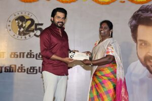 *கடந்த அக்டோபர் மாதம் பிரம்மாண்டமாக நடந்தேறிய கார்த்தி 25 விழாவில் திரைக்கலைஞர் கார்த்தி சிவகுமார் இந்த சமூகத்திற்கு வெவ்வேறு தளங்களில் உதவும் வகையில் ஒரு கோடி ரூபாய் உதவித் தொகை அறிவித்தார். அதில் 25 சமூக செயற்பாட்டாளர்களின் செயல்களை கெளரவப்படுத்தும் விதமாக தலா 1 லட்சம் வீதம் 25 லட்சம் அளிக்க திட்டமிடப்பட்டுள்ளது. தங்கள் மேன்மையான சேவைக்காக ஊக்கத்தொகை பெரும் 25 சமூக செயல்பாட்டாளர்கள் பற்றிய விவரம் மற்றும் செயல்பாடுகள்*