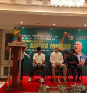 தமிழ்நாட்டில் நம்மால் கால்பந்து விளையாட்டை அடுத்த நிலைக்கு எடுத்துச்செல்ல முடியவில்லை. அதற்கு நிறைய காரணங்கள் உள்ளன. இதையெல்லாம் நன்கு கவனித்த நான் தமிழ்நாட்டில் கால்பந்து விளையாட்டை அடுத்த தளத்திற்கு கொண்டு செல்ல வேண்டும் என வேல்ஸ் ஃபுட்பால் கிளப்பை தொடங்கினேன். இந்த கிளப் பொருளாதாரத்தில் பின் தங்கிய மாணவர்களுக்கு இலவச பயிற்சிகளை வழங்கும். அவர்கள் தங்கி பயிற்சி மேற்கொள்ள வசதியாக அவர்களுக்கு ஒரு தங்குமிடமும் தயார் செய்யப்பட்டு வருகிறது. தமிழ்நாட்டில் குக்கிராமங்களில் உள்ள ஃபுட்பால் மீது ஆர்வம் கொண்ட வசதியில்லாத பல மாணவர்கள் இருப்பார்கள். அவர்களை, கண்டெடுத்து வேல்ஸ் ஃபுட்பால் கிளப்பில் ஆட வைத்து இந்திய அணிக்கு அனுப்புவதுதான் எங்கள் நோக்கம். இவர்களுக்கு சர்வதேச அளவிலான பயிற்சிகள் வழங்கப்படும் என்பதை இங்கு பெருமையுடன் தெரிவித்துக்கொள்கிறேன் அதற்காக தான் ஸ்பெயின் கால்பந்து வீரர் திரு கெய்ஸ்கா டோகேரோவை, வேல்ஸ் ஃபுட்பால் கிளப்பின் சர்வதேச தூதராக நியமித்துள்ளோம். தமிழ்நாடு, தேசிய மற்றும் சர்வதேச அளவில் போட்டிகளை நடத்த திட்டமிட்டுள்ளோம் அதற்கு கெய்ஸ்கா நமக்கு உதவுவார் என நம்புகிறேன். இந்த வருடம் நடக்க இருக்கும் ஐ-லீக்கில் வேல்ஸ் ஃப்சி மாணவர்கள் நிச்சயம் நல்ல இடம் பிடிப்பார்கள் என எனக்கு தெரியும். நல்ல நோக்கம் நிச்சயம் வெற்றி பெற செய்தியாளர்கள் இந்த செய்தியை தமிழ்நாட்டின் மூலை முடுக்கு வரை சென்று சேர்க்க வேண்டும்”.