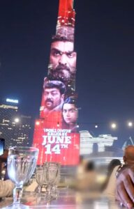 உலகின் உயரமான புர்ஜ் கலீபா கட்டிடத்தில் விஜய் சேதுபதியின் 50வது திரைப்படமான ‘மகாராஜா’ டிரைலர் வெளியிடப்பட்டது. இதில் விட் ஈவன்ட்ஸ் மற்றும் பேஷன் ஸ்டுடியோ நிறுவனங்கள் ஏற்பாட்டில் போஸ்டரும் வெளியிடப்பட்டது. *தமிழ் திரைப்பட நிகழ்வுகள் புர்ஜ் கலீபாவில் அரிதாகவே நடைபெறும் நிலையில், இந்த பிரம்மாண்ட கட்டிடத்தில் முன்னோட்டம் திரையிடப்பட்ட இரண்டாவது தமிழ் திரைப்படம் என்ற பெருமையை ‘மகாராஜா’ பெறுகிறது. இதற்கு முன் ‘விக்ரம்’ படத்தின் முன்னோட்டம் இங்கு வெளியானது. இரண்டு திரைப்படங்களிலும் விஜய் சேதுபதி நடித்திருப்பது குறிப்பிடத்தக்கது*.